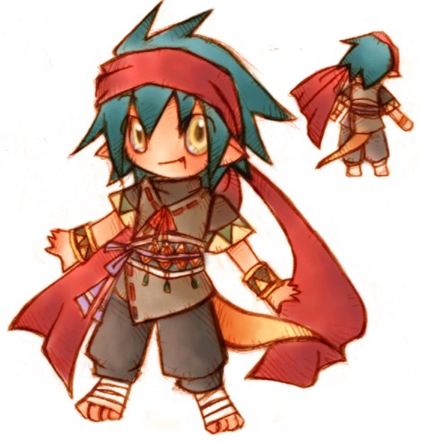 牙としっぽを持つ爬人の少年で、ティードの弟。しかし血は繋がっていないらしい。